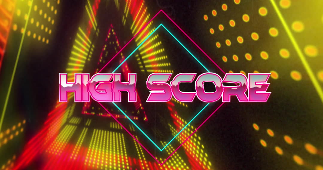 This neon high score banner exudes a retro, futuristic vibe with its colorful, glowing abstract geometric shapes. Perfect for use in gaming blogs, retro-themed events, or digital art exhibitions. Ideal for providing a nostalgic yet dynamic feel to video game interfaces and digital marketing materials.