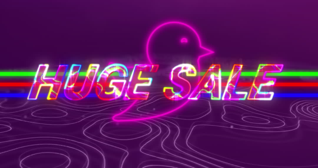 - Neon Huge Sale Advertisement with Bird Icon on Purple Background