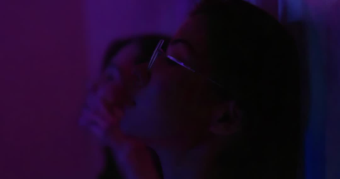 AI Generated Image. Woman in glasses bathed in neon lights tilting her head upward creates a vibrant, contemplative mood. Ideal for themes of introspection and modern aesthetics. Useful for artistic projects, music video snippets, urban lifestyle promotions, and technology-focused marketing materials.