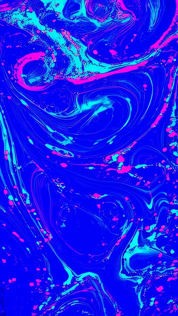 AI Generated Video. Vertical video showing neon marbled pigments flowing and swirling into heart-shaped vortex. Close-up surface revealing layered liquid textures, bright cyan and magenta streaks pulsing against deep blue backdrop. Seamless loop allowing continuous playback for short social clips, music visuals, mobile wallpapers, web hero loops, event projections. Working well for Valentine campaigns, romantic product promos, club visuals, psychedelic art installations, motion design projects. Editing suggestions: using slow playback, adjusting color grading to match brand palette, adding text overlays or logo stings, pairing with ambient electronic music or upbeat pop to shape mood and engagement.