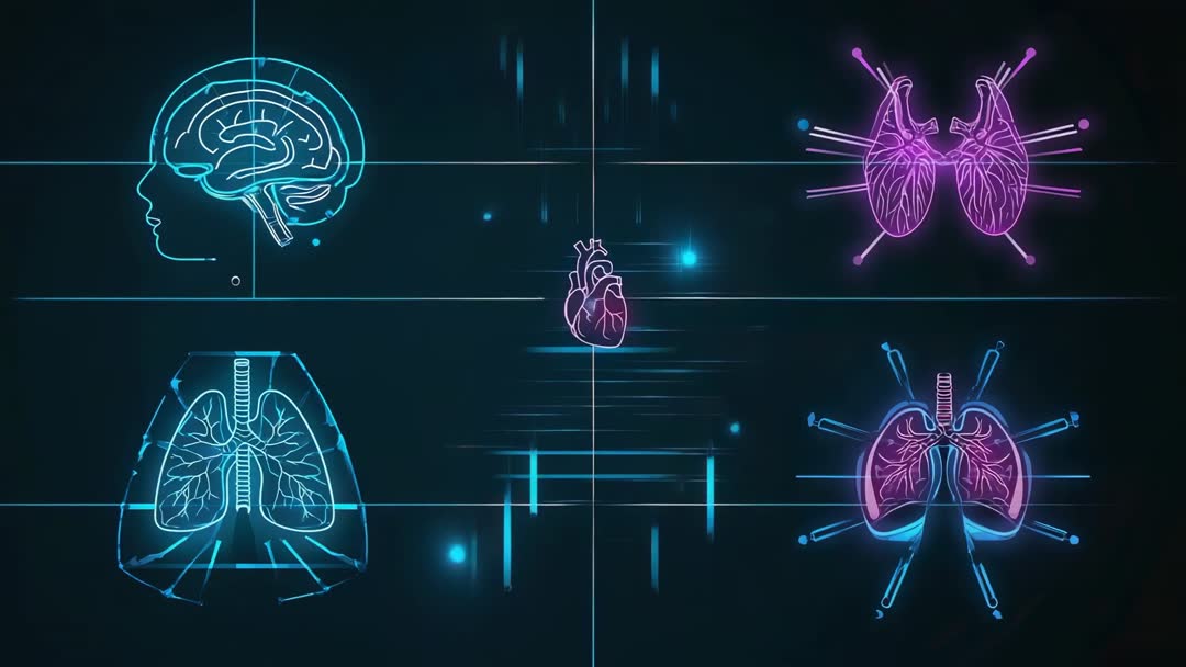 - Neon Organ Icons with Data Pulse on Tech Grid Backdrop
