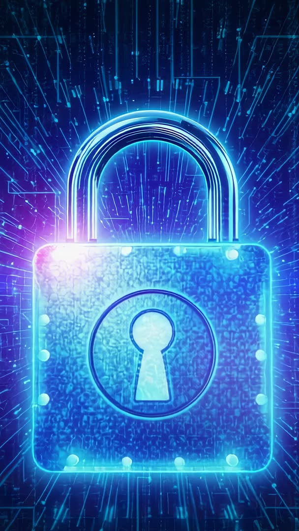 AI Generated Image. Showing neon padlock pulsing against cyber circuit backdrop and reacting to incoming signal, representing encryption and secure access control. Featuring vibrant blue and magenta glow, dynamic motion lines, and floating circuit traces creating futuristic tech atmosphere. Ideal for use in cybersecurity websites hero sections, app intro screens, product demos, security software ads, corporate presentations, trade show displays, and social media vertical ads. Looping short clip works as animated background for mobile onboarding, tutorial videos, and streaming overlays. Pairing well with logo reveal, headline text, and sound design by syncing padlock pulses to audio for stronger branding. Leaving space around padlock for overlaying icons or call to action. Delivering modern tech feel for explainer videos, training modules, risk reports, and marketing campaigns.