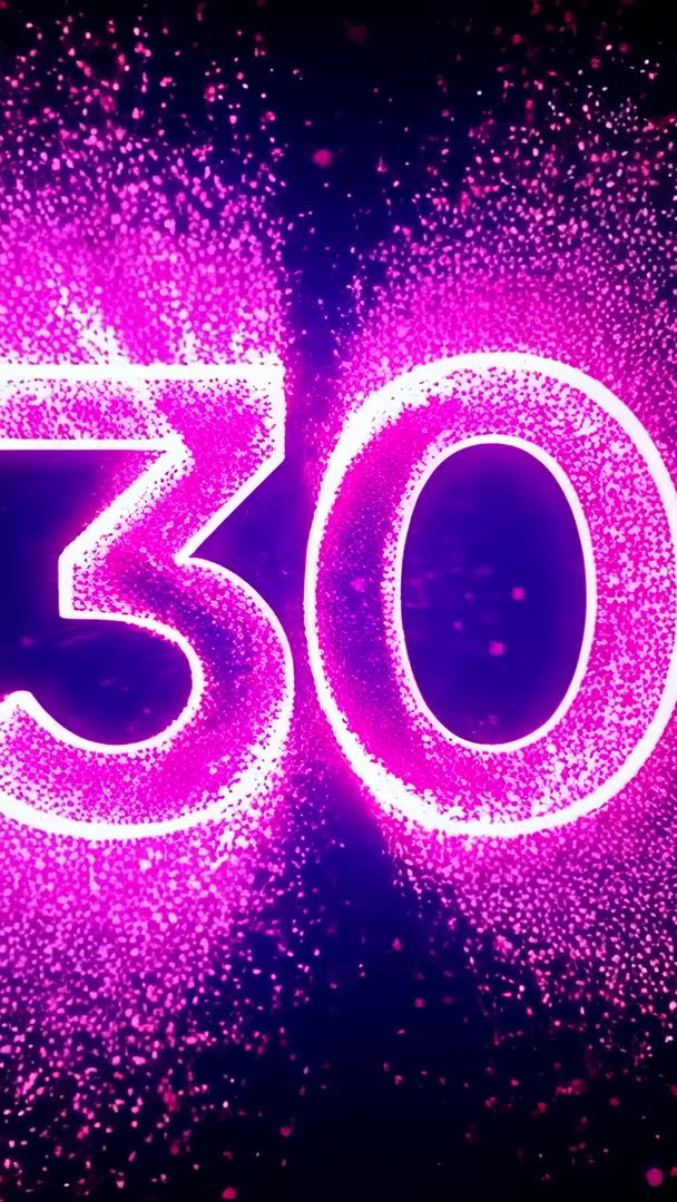 Neon Particle Countdown 30 Forming in Magenta Vertical Glowing Reveal Video