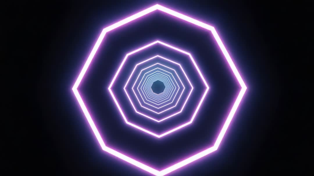 - Neon Polygon Rings Pulsing in Digital Tunnel