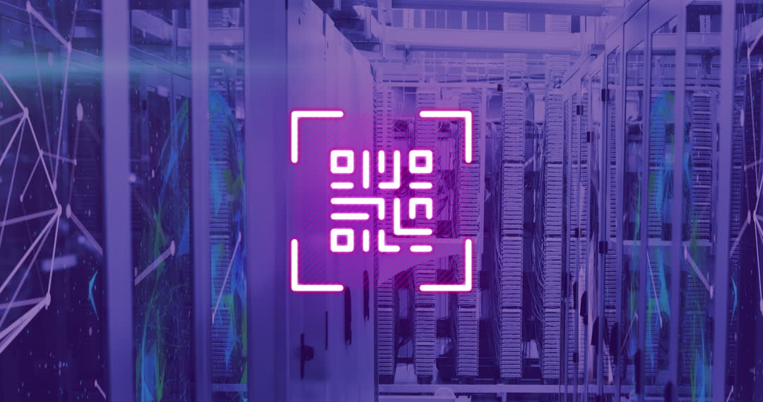 Image shows neon QR code integrated over a modern server room, set against a vivid violet backdrop with rows of servers. This can be used to illustrate concepts related to cybersecurity, digital communication, information technology systems, and modern data infrastructure. Ideal for use in technology-focused content, such as websites, brochures, or presentations covering analysis, security practices, and digital innovation.