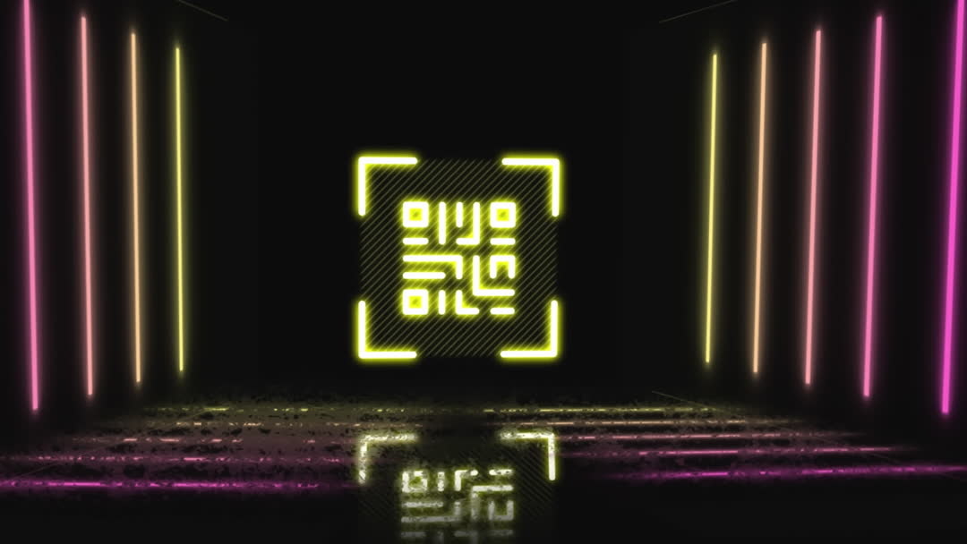 Illustrating vibrant facades of modern technology, this animation of neon lines framing a QR code creates a futuristic vibe ideal for tech and innovation content. Representing digital communication and contemporary design aesthetics, it is suitable for integrating into websites, tech presentations, and innovative marketing material.