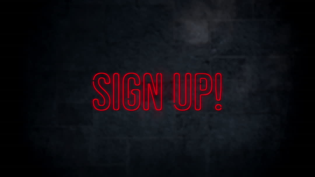 - Neon Red Sign Up Text Banner on Black Background