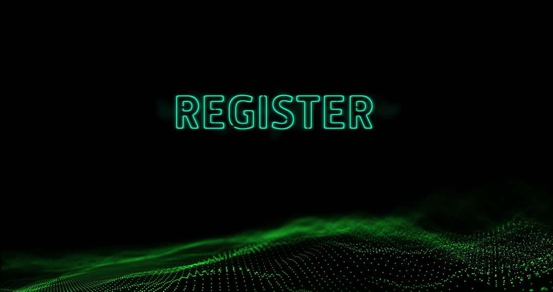 This animation features a glowing green 'Register' sign on a dark background with vibrant digital elements. Perfect for technology, communication, or online registration themes and can be used in websites, social media, or promotional materials focusing on digital services or events.