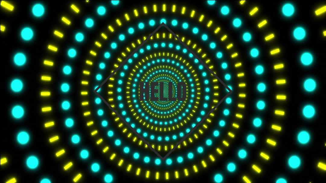 This vibrant video showcases an animated 'Hello' text surrounded by concentric neon circles. Perfect for creative projects, digital design inspiration, futuristic motifs, or as an eye-catching visual element in video content. Ideal for tech-related themes and playful, dynamic marketing campaigns.