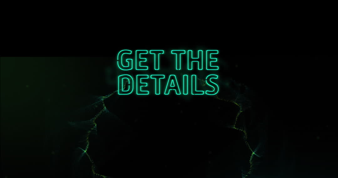 This vibrant video features neon text reading 'Get the Details' prominently positioned over a black backdrop. The digital-style glow and nuances of data processing give it a modern, tech-savvy appeal, suitable for headlines, marketing materials, or social media visuals. Perfect visual choice for themes related to digital technologies, analytics, or promotional content focused on unveiling or highlighting specific information.