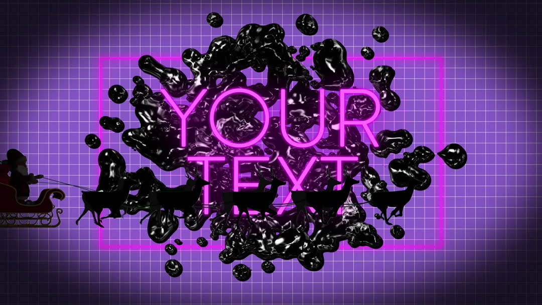 Neon Text with Santa Sleigh and Black Liquid Splash Video