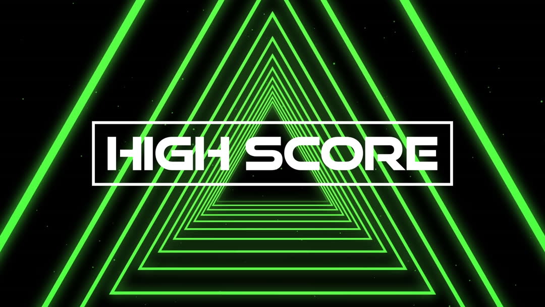 Neon Triangle Tunnel with High Score Text Overlay Video