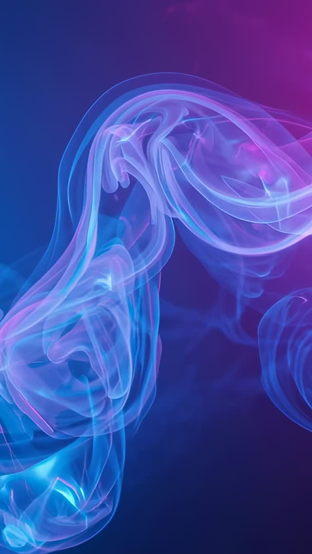 AI Generated Image. Vertical video featuring neon bluish vapor ribbon curling across deep blue to magenta gradient, creating fluid, glowing motion. Evoking futuristic, dreamy, immersive atmosphere with smooth, organic flow. Ideal for creating background loops for social media stories, reels, and vertical ads; smartphone wallpapers; music visualizers; concert projections; and app backgrounds. Working well for title intros, website hero panels, product display overlays, and motion graphics compositions. Pairing with slow dissolves, particle effects, and color grading to enhance depth and color intensity. Providing seamless loop potential for continuous playback and easy integration into multimedia and branding projects.