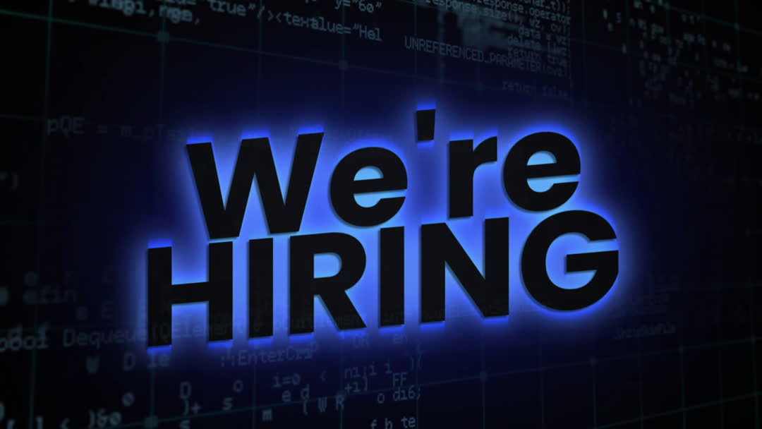 This graphic features a neon 'We're Hiring' sign overlaid on a digitized background symbolizing data processing. Ideal for online job postings, recruitment campaigns, business announcements, or technology-focused employment advertisements. The blend of digital elements conveys a modern and tech-savvy video.
