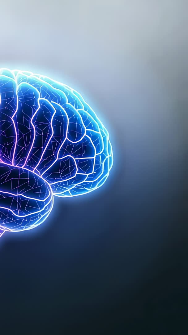 - Neon Wireframe Brain Rotating Vertical Video for Neuroscience, AI and Tech Presentations