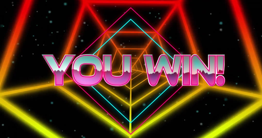 This vibrant and colorful neon animation features 'You Win' text in a retro-futuristic style, making it ideal for use in gaming victory screens, celebratory content, and technology-themed events. The geometric layers add depth and intrigue, perfect for emphasizing success and achievement in a lively and modern way.