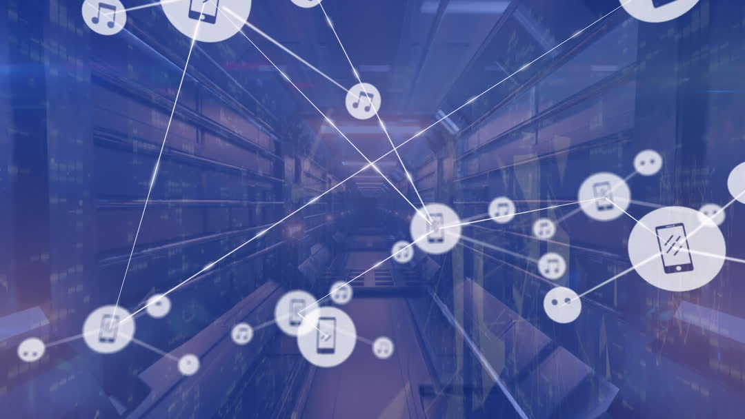 Visual illustration depicting interconnected devices and data flow superimposed on servers, often used in materials discussing modern telecommunications, IT infrastructure advancements, and global connectivity concepts.