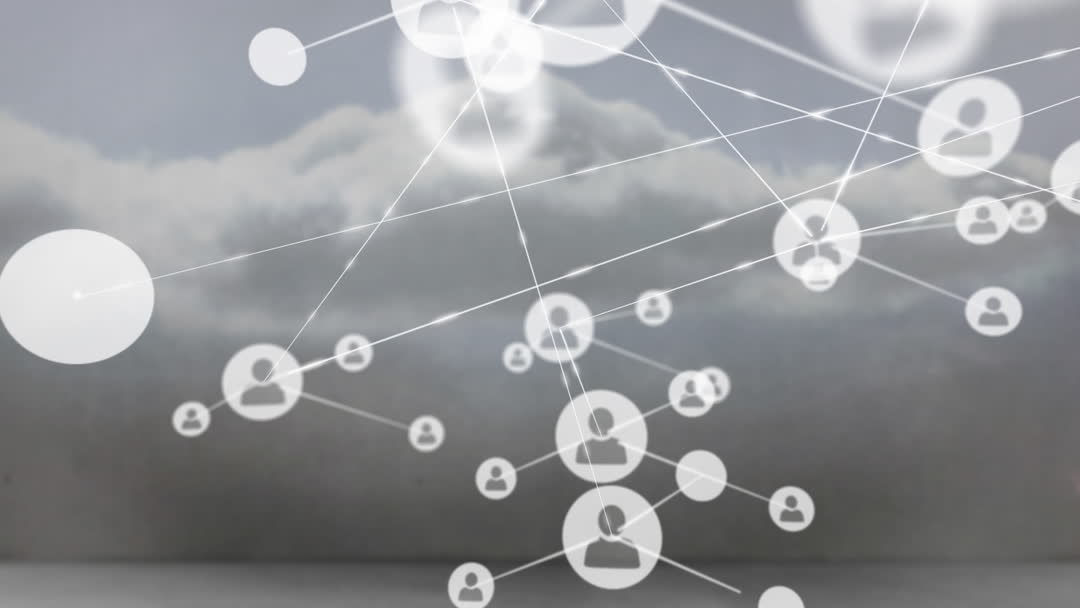 Network of Profile Icons Against Cloudy Sky Backdrop Video