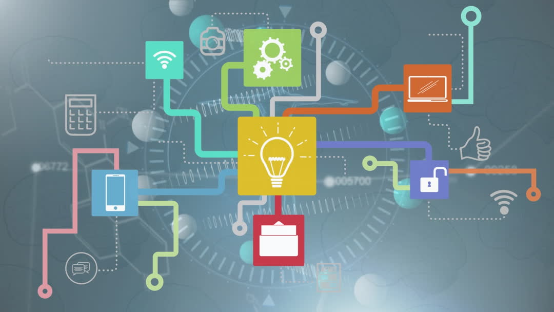 Network of Technology with Falling Dollar Bills and Heart Icons Video