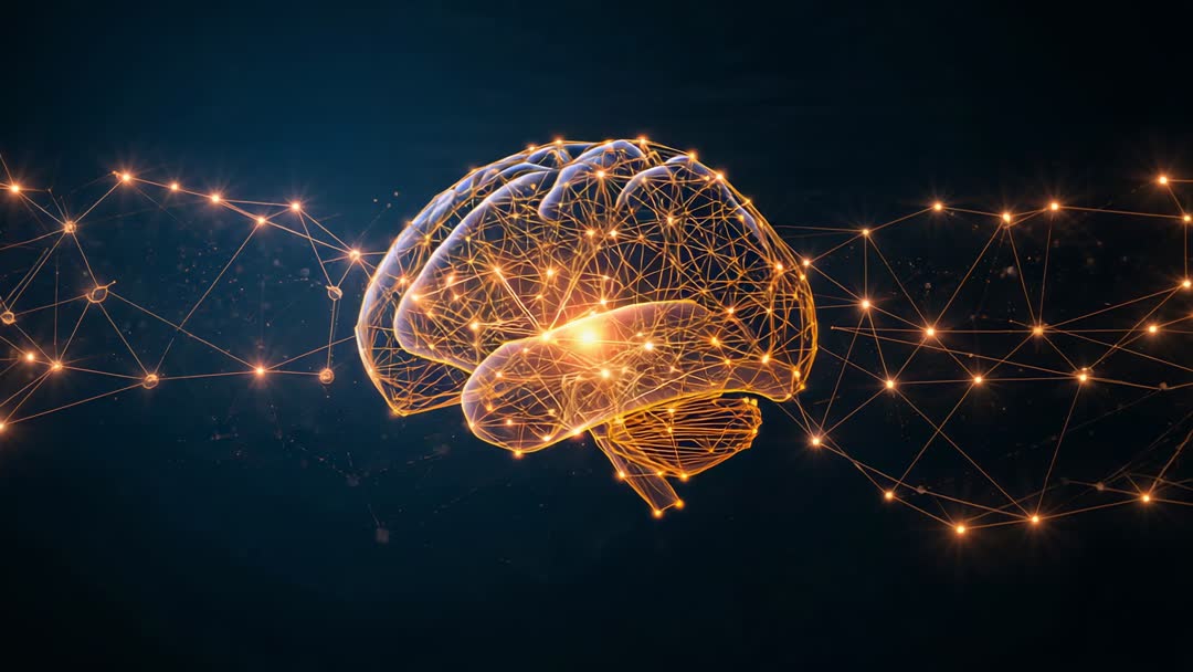 AI Generated Image. Showing holographic brain model pulsing with electric nodes and glowing synapses while network strands transmit impulses across navy void. Ideal for tech presentations, AI and neuroscience videos, website hero banners, scientific documentaries, corporate slides, advertising for neural devices, concept art for AI research. Offering animated feel and strong focal point for motion graphics, transitions, backgrounds for podcasts, social media clips, explainer videos. Suggested production techniques: using loopable 4K render, applying slow crossfade transitions, adding subtle parallax for depth, matching color grade to brand palette, overlaying bold headline text and lower-third animations, adding ambient electronic soundtrack and soft riser hits for emphasis. Including high-contrast alpha-friendly edges for easy compositing and cropping options for vertical social formats.