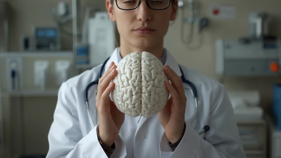 AI Generated Image. A medical professional holding a detailed brain model, emphasizing education and awareness in neurology. Suitable for content related to medical training, neuroscience research, healthcare awareness, and educational materials. The presence of a stethoscope and doctor's coat underlines professional settings and context, making it ideal for hospital, medical school, or health sector publications.