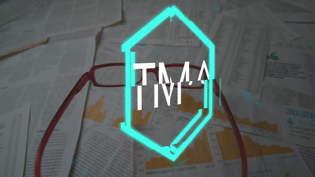 NFT Concept over Business Documents with Glowing Hexagon Video