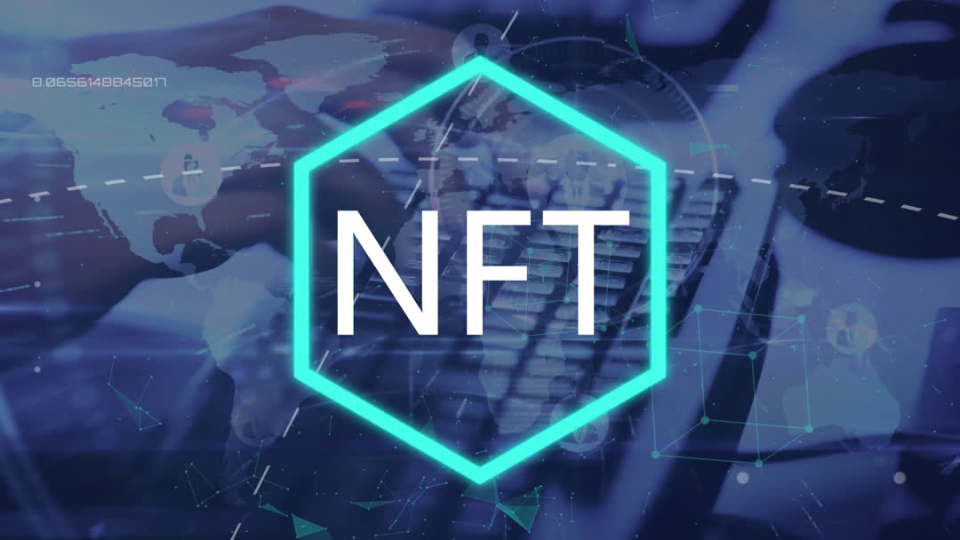 Stylized background featuring the acronym 'NFT' surrounded by digital technology symbols and data flow, signifying the dynamic world of digital assets and blockchain technology. Suitable for illustrating concepts in fintech, online security, or illustrating cryptocurrency ecosystems and the NFT market.