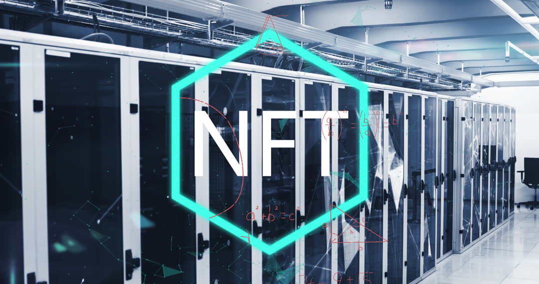 Showcasing the intersection of NFT technology and server room environments. Ideal for illustrating trends in digital innovation, blockchain systems, and cyber security. Can be used for articles, presentations, and online content related to virtual asset management and data centers.