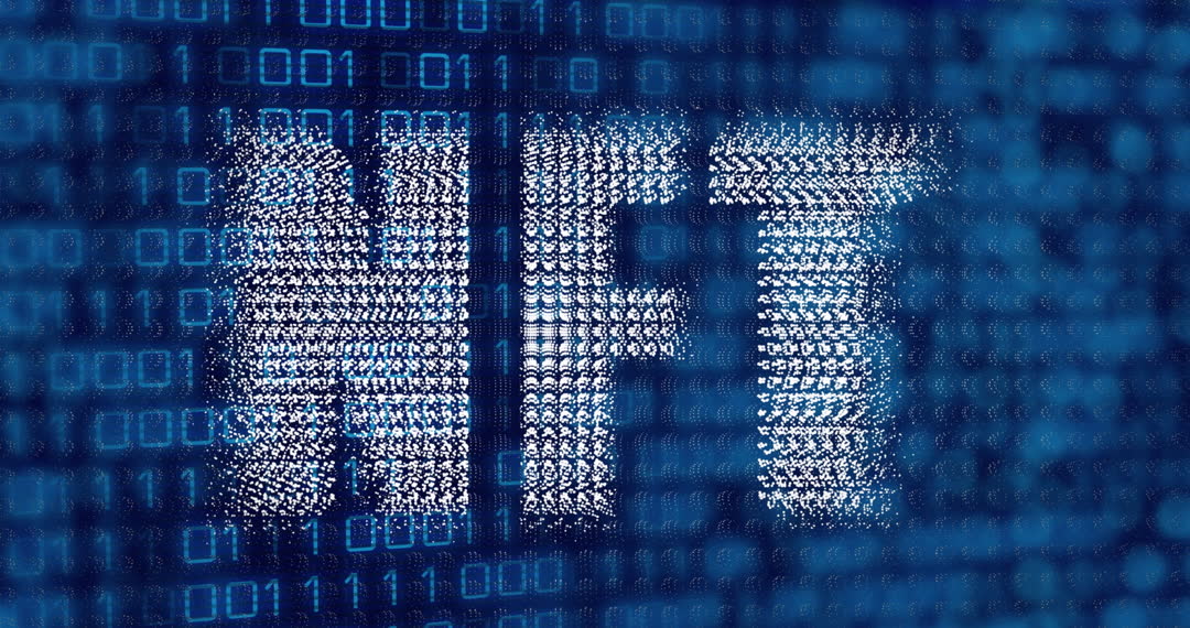 Digital data design featuring bold NFT text, suggesting modern blockchain technology and cryptocurrency innovation. Appealing for content related to future technologies, blockchain exploration, or cryptocurrency markets.