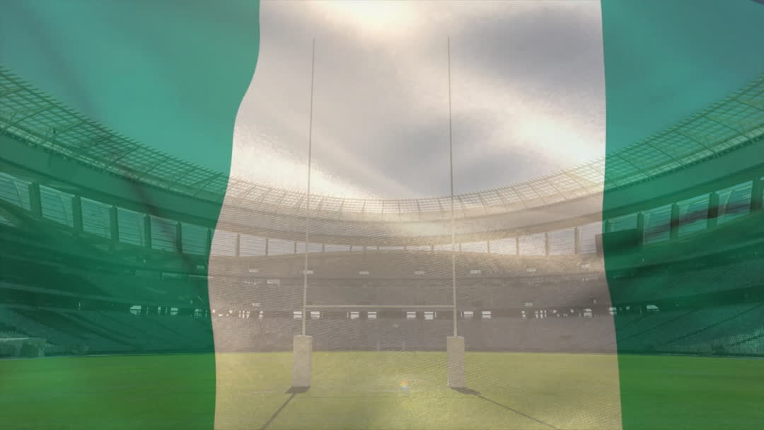 - Nigerian Flag Overlaying Rugby Stadium Scene