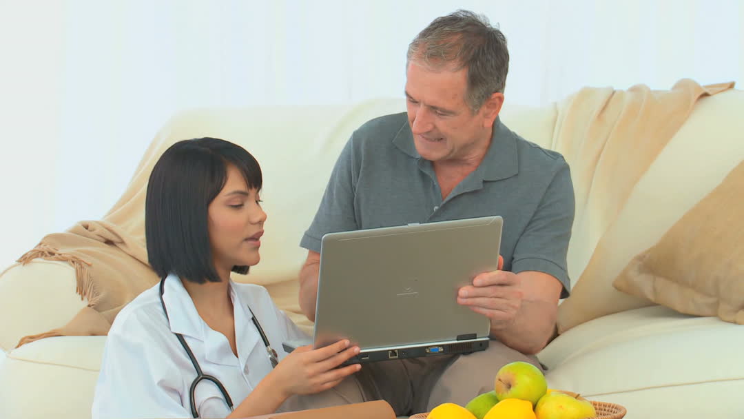 - Nurse Educating Senior Patient with Laptop in Comfortable Environment