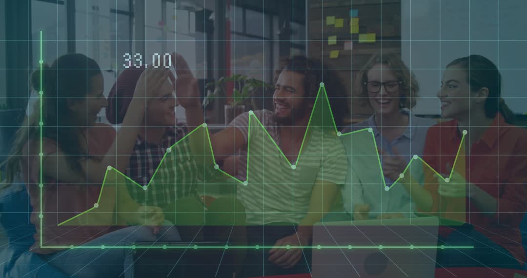 - Office Colleagues Analyzing Live Data with Chart Overlay