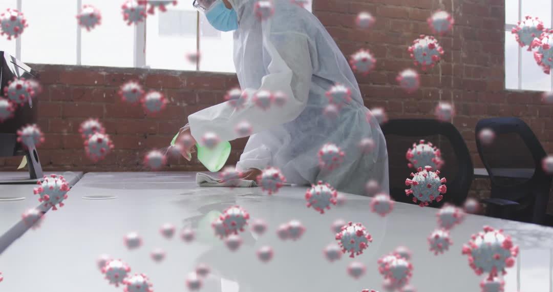 Office Sanitation During Covid-19 with Virtual Virus Overlay Video