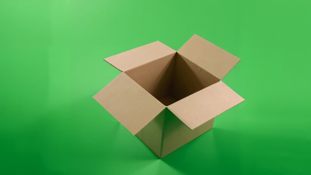 - Open Corrugated Cardboard Box on Green Screen, Zooming Studio Footage for Chroma Key