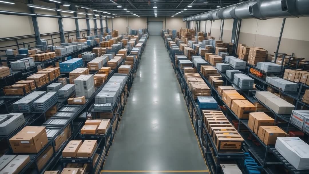 - Organized Aisle in Modern Warehouse with Metal Shelving