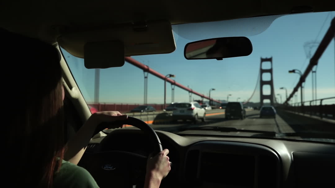 - Over-the-Shoulder View Woman Driving on Golden Gate Bridge