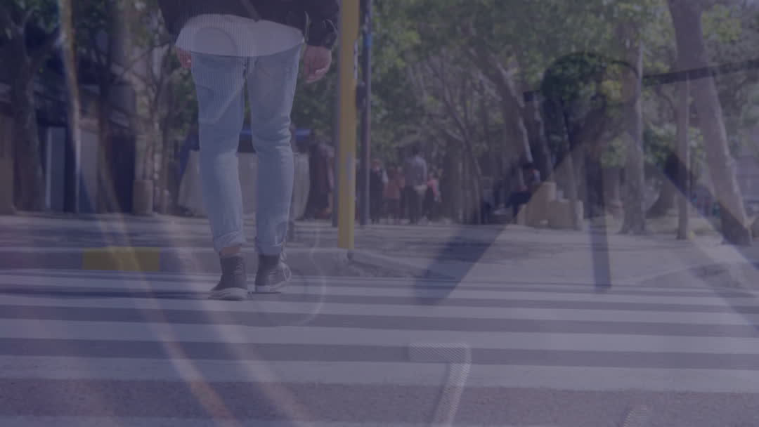 Silhouettes of people are visible on a city street with an overlay of a clock, symbolizing the continuous passage of time. Shades of blue provide a modern aesthetic. Ideal for projects involving time management, urgency, urban lifestyle themes, and conceptual art focusing on the speed of urban life.