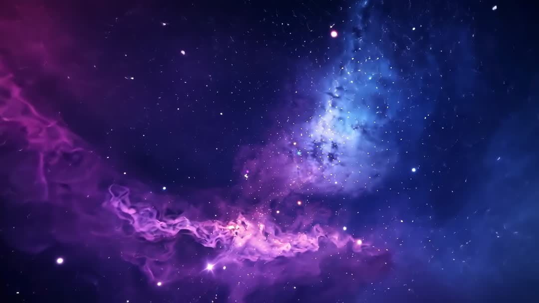AI Generated Image. Video panning across purple-pink nebular filament drifting right, revealing pale blue stellar band and scattered star knots. Scene featuring swirling gas clouds, glowing magenta ribbon, and high-contrast cyan highlights for dramatic depth. Motion smooth and cinematic, presenting slow parallax suitable for long-form intros and ambient loops. Use for sci-fi title sequences, space documentary intros, streaming channel openers, meditation or relaxation backgrounds, desktop and mobile wallpaper loops, music visualizers, app backgrounds, website hero banners, and social media promos. Frame working well for album covers, poster art, concept art, and educational presentations about interstellar clouds. Color palette and motion enhancing futuristic, cosmic, or dreamy visual themes. AI-generated aesthetic supporting stylized or abstract space content.