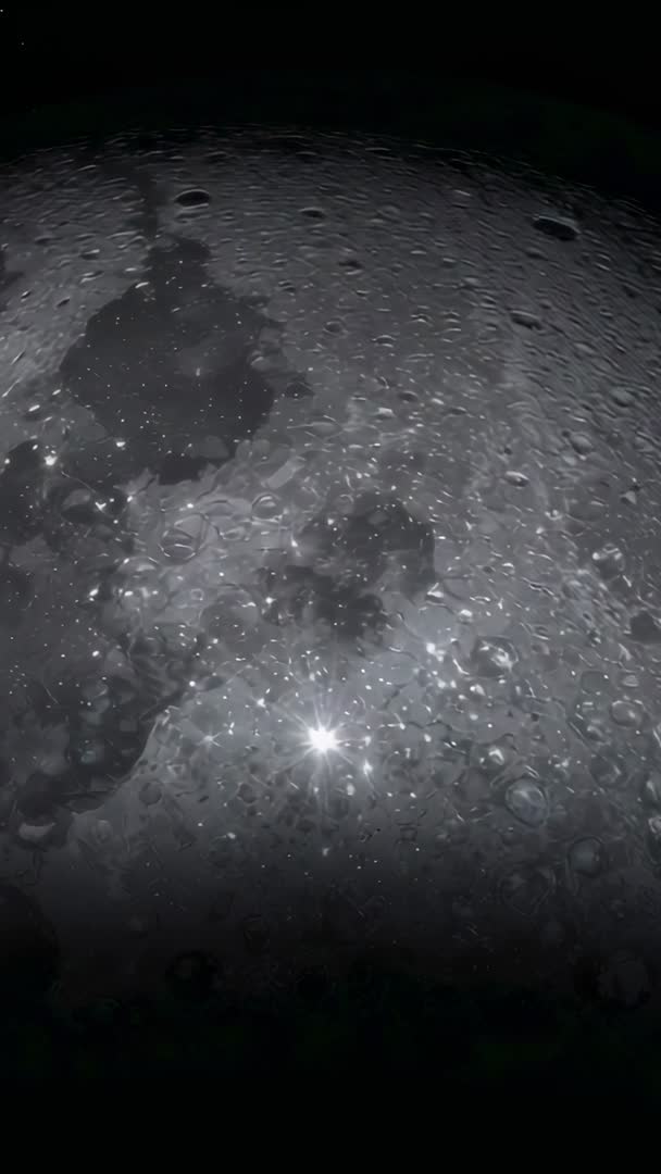 - Panning orbiter revealing cratered lunar surface with sun glint vertical portrait video