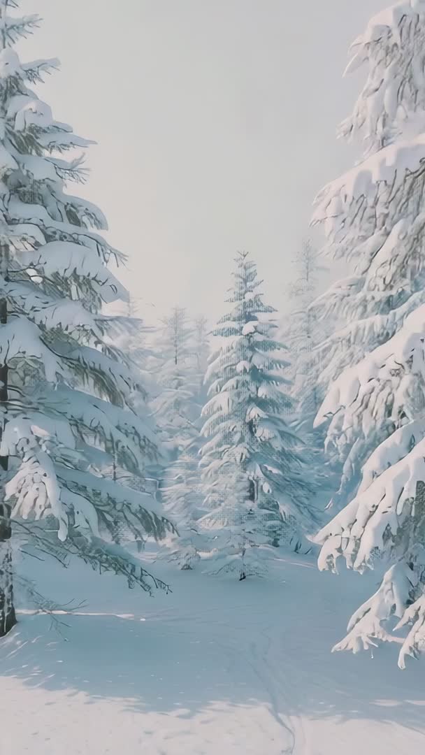 AI Generated Image. Presenting vertical video panning slowly over snow-laden pine clearing, centering on frosted pine cluster framed by heavy snow on branches. Capturing soft morning light and cool blue tones for calm, winter-themed visuals. Offering 9:16 composition ideal for smartphone reels, social media stories, vertical ads, and digital signage. Working well as background for holiday greetings, nature documentary opener, wellness and meditation apps, travel and tourism promotion, and seasonal product advertising. Allowing easy color grading, subtle speed ramping, and seamless looping for ambient scenes. Suggesting slow crossfade or minimal text overlay on upper negative space for title or branding. Including option to pair with gentle ambient music or natural forest sound for immersive mood.