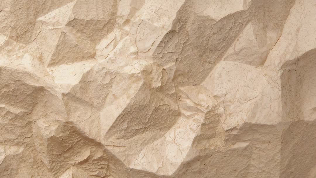 AI Generated Image. Camera panning right and slowly zooming into beige crumpled paper surface, showing closeup details of creases, ridges and micro cracks. Studio lighting creating soft highlights and deep shadows, enhancing tactile quality and subtle color variation. Footage suiting backgrounds for title sequences, product promos, packaging mockups, craft tutorials, stop-motion overlays, vintage or eco branding. Texture working well as overlay in video editing using multiply or overlay blending, adding subtle grit to typography or motion graphics. Cropping and tiling for repeating background, color grading to warm or cool tones, speed ramping for dramatic reveal, looping for seamless playback. Ideal for social media stories, website hero banners, book covers, printed backdrops, collage art and craft packaging presentations.