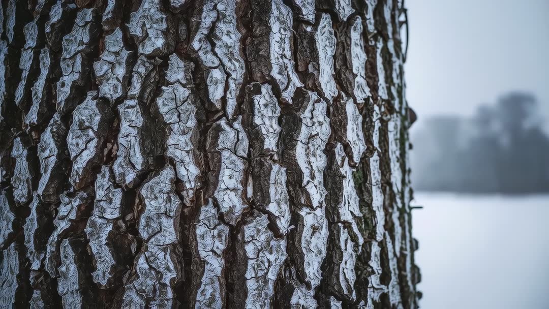 - Panning Slowly Across Frosted Tree Bark with Lichen on Snowy Plain, Cinematic Texture Sequence