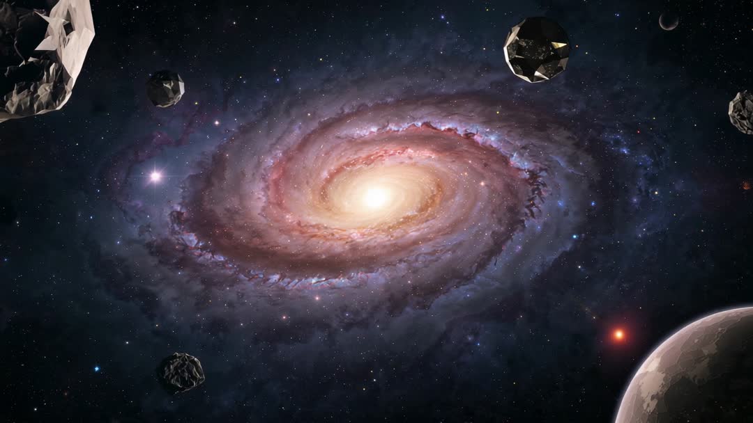 - Panning Through Majestic Spiral Galaxy with Asteroids in Deep Space