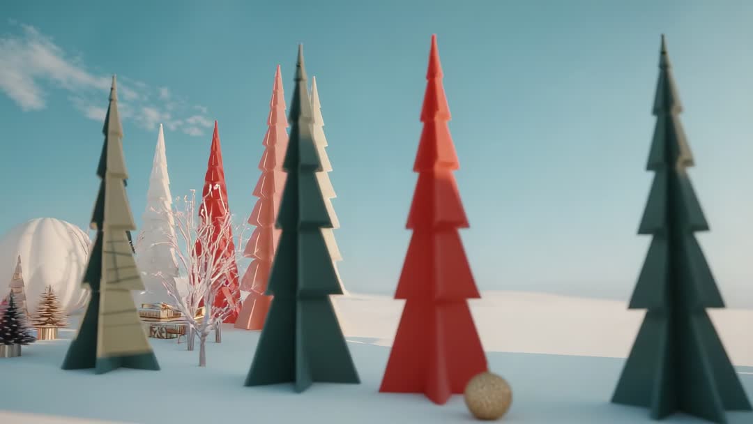 - Panning Through Winter Wonderland with Cone Trees and Gifts