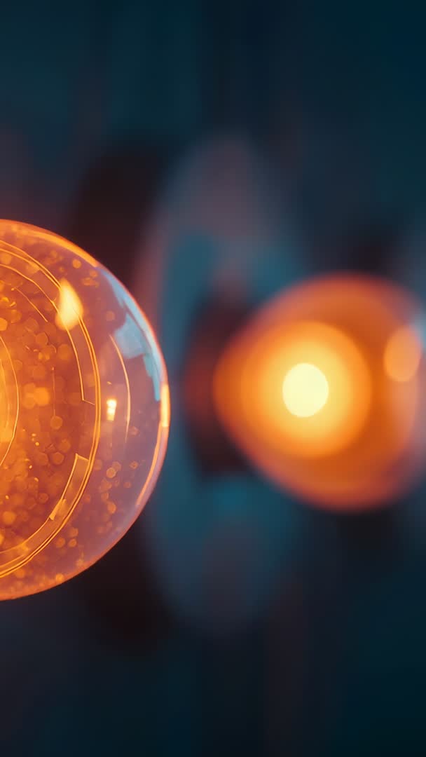 AI Generated Video. Showing close-up pan over vintage Edison bulbs on metal discs along dim hallway wall, shallow depth of field creating warm bokeh highlights. Featuring vertical 9:16 aspect ratio, slow smooth pan, warm color grading, low-key lighting. Working well for social media stories, Instagram Reels, TikTok ads, hospitality promos, interior design portfolios, and lighting brand showcases. Enabling overlaying of text, adding product reveals, creating title intros, looping as ambient background for bars and restaurants.