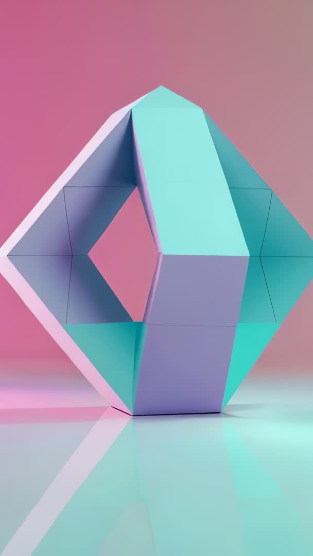 AI Generated Image. Rotating pastel hexagonal ring floating over glossy reflective surface, showing soft pink and teal gradient transition. Clean geometry and symmetrical composition creating modern minimal mood. Slow seamless loop suitable for vertical video playback and mobile social reels. Use as hero clip for landing pages, video ads, broadcast bumpers, or background for product mockups and app splash screens. Ideal for tech branding, fashion campaigns, and event promos needing sleek futuristic vibe. Easy color grading and logo overlaying thanks to clear negative space and high contrast between shapes and background. Exportable as vertical MP4 or looping GIF for Instagram Stories, TikTok, and website headers.