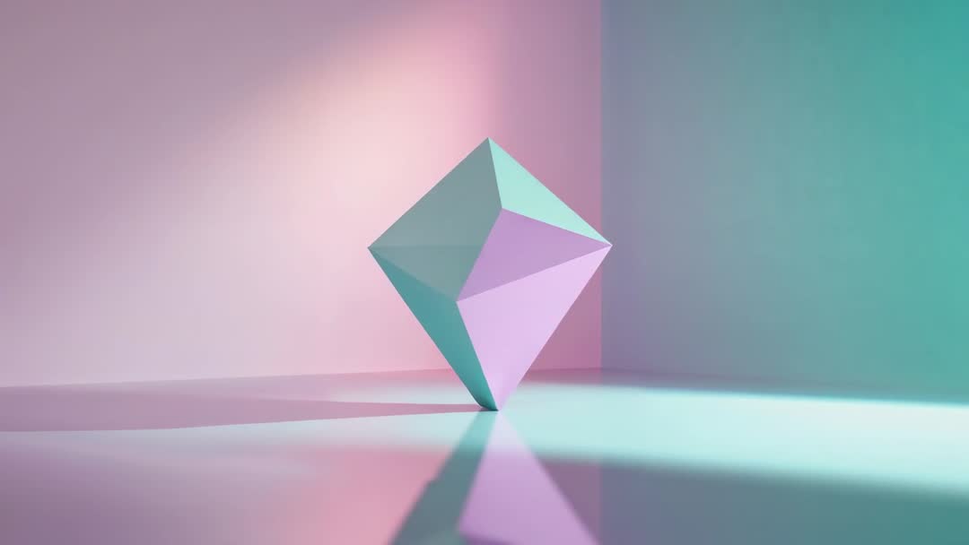 - Pastel Polyhedron Balancing with Pink Teal Lighting