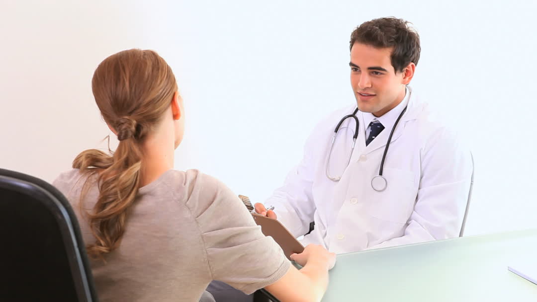 The video shows a scene in a medical office where a female patient is engaging in a consultation with a male general practitioner. This setting highlights a healthcare professional attentively listening to the patient, ready to provide personalized medical advice. Suited for healthcare websites, medical services marketing, or educational materials about patient care and doctor-patient communication.