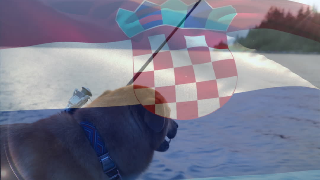 - Patriotic Dog on a Boat Overlaid with Croatian Flag