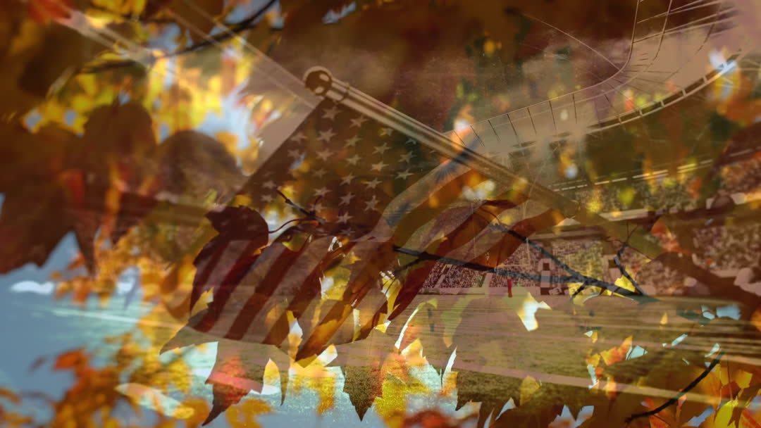 Patriotic Fall Leaves with USA Flag and Stadium Overlay Video